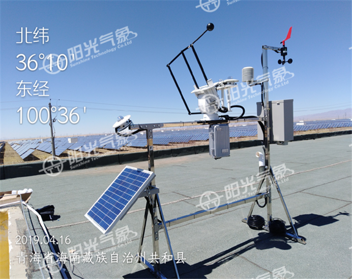 迄今为止,共和县已经建立数十个光伏电站,都是采用锦州阳光气象科技有限公司的光伏电站环境监测设备,我公司的光伏电站环境监测系统是按照国际气象WMO组织气象观测标准及IEC(国际电工技术委员会)、国家电网公司企标Q/GDW 617-2011《光伏电站接入电网技术规定》、国家电网公司企标Q/GDW 618-2011《光伏电站接入电网测试规程》等规范标准设计生产研发的新型光伏电站环境监测站,同时也符合《并网光伏发电系统工程验收技术规范》等相关技术要求。本系统可观测的环境辐射要素有:环境温度、环境湿度、组件温度、风速、风向、气压、太阳总辐射、日照时数、太阳总辐射、太阳直接辐射、太阳散射辐射等指标。具有性能稳定,检测精度高,完全无人值守等特点,可满足专业光伏电站环境气象监测、太阳辐射监测等相关要求。