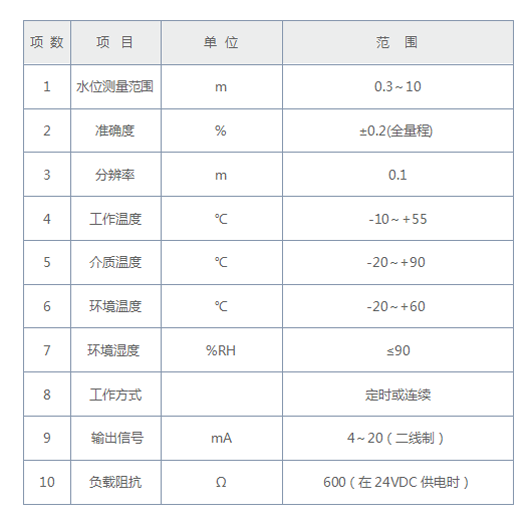 2、传感器内置有温度传感器,对超声波速度进行修正。安装简单,直接将传感器装在监测水面上方数米位置即可。非接触测量,寿命长,适合10米内水位的测量。