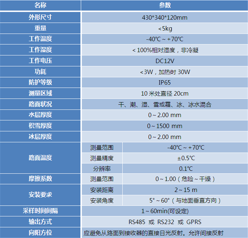 路面温度采用红外测温原理,实现了非接触远距离精准测量路面温度。
