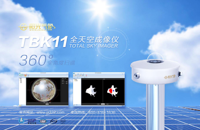 TBK11 型全天空成像仪为新一代全天空成像仪,拥有独特的技术优势,可以在无太阳遮挡而完全暴露在太阳光照之下清晰的自动记录全天空云状分布数据,时空分辨率较高,得到的云量计算结果更精确。可用于监测天气和云况变化、太阳能产能预报和光伏发电性能评估等,其嵌入太阳能监测系统可以极大增强区域太阳能资源研究和预测的能力。