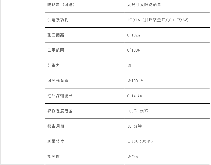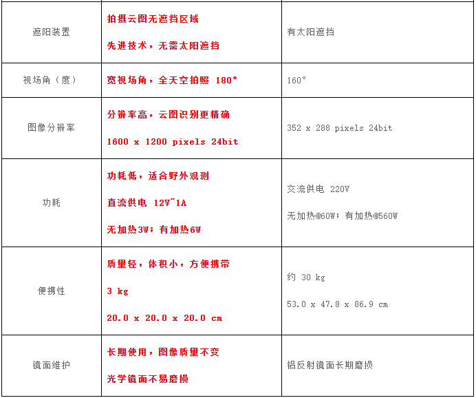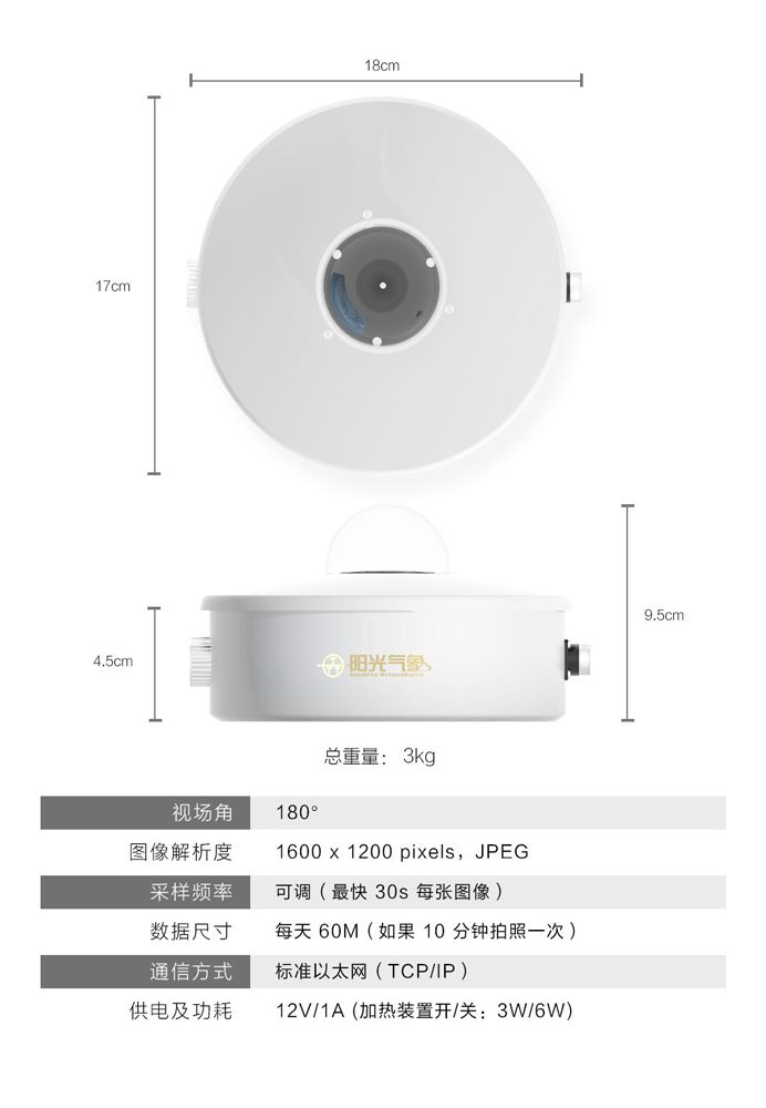 3 无太阳遮挡装置,有效记录全天空云况信息。
