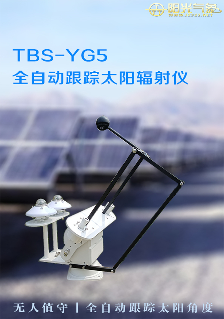 TBS-YG5全自动跟踪太阳辐射仪是目前最先进的无人值守型太阳辐射仪器,解决了国内太阳辐射仪器需人工维护的弊病(特别是直接辐射与散射辐射),满足了全自动化测量的要求,它是将机器人控制技术与辐射仪器完美结合的产品, 系统采用光追踪+旋转角度测量+光照强度测量+跟踪运行等综合技术, 可保证高精度的跟踪太阳。 同时测试太阳的五要素指标(总辐射,散射辐射,直接辐射,日照时间,太阳高度角),还具有强大的网络通讯功能,测试数据可以远程传输到指定的服务器。可应用于气象、太阳能、光伏、农业、建筑及科研教学等领域。