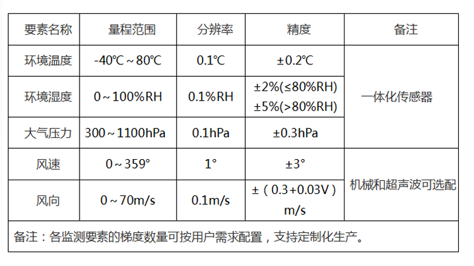 ●风向风速传感器内置加热单元,可消除高空低温天气对测试精度的影响;