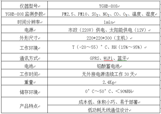 YGHB-808六参数微型站是一款在线监测大气环境中PM10、PM2.5、SO2、NO2、O3、CO、温度、湿度等多参数的微型化仪器。