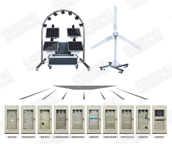 追日系统、风源控制系统、模拟系统、太阳能控制系统、风能控制系统、储能系统、离网逆变系统、并网逆变系统、负载系统、控制系统、风机。