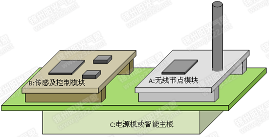 无线传感网节点模块采用模块化设计,各个模块可自由组合形成针对不同应用的无线节点。系统包含多个无线传感网节点模块及一个无线网络协调器模块。