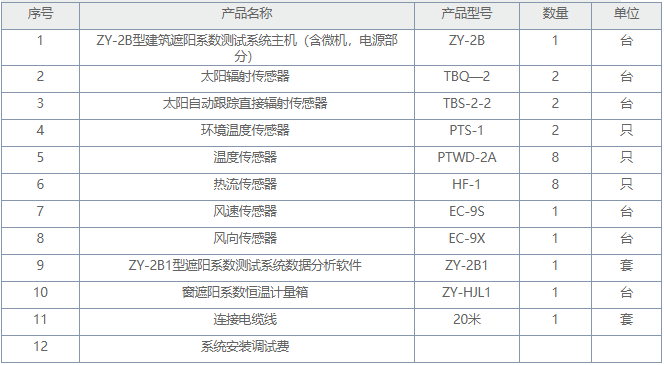 億彩85999cc官网 产品组成:ZY-2B型建筑遮阳系数测试系统主机、传感器、ZY-2B型遮阳系数测试系统数据分析软件、窗遮阳系数恒温计量箱、连接电缆线、通讯系统等。