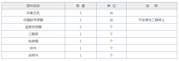 本测试系统选用精确标定热辐射传感器,具有稳定、灵敏度高、性价比好的特点;温度采用金属封装数字温度传感器,响应时间短,精度高(常温达±0.2°C)。采集主机及配套处理软件为我公司自行开发设计,主机采用国际先进的低功耗元器件设计,并具有自动休眠功能,普通电池可连续开机达半个月以上。显示部分采用汉字LCD亮屏智能显示;同时我公司针对用户的实际使用要求,专门开发了现场专业便携安装辐射传感器,可方便安装在三脚架上。人性化的设计理念使得繁杂的测试工作变得轻松自在,是科研、检测、教学的良好选择。