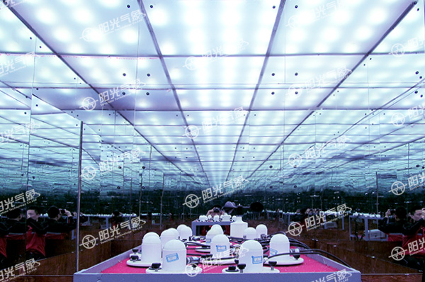利用稳定的LED灯矩阵组,分组控制,达到亮度一致均匀,通过高透光率的扩散膜进一步均匀扩散。达到平面镜做的四个内立面后经过多次反射,使天空亮度满足国际照明学会标准全云天空亮度分布或均匀亮度分布。科研人员利用该设备可在国际照明学会(CIE)推荐的标准全云天空以及其他天空下用建筑模型进行建筑采光的研究。人工天空亮度稳定,数据可靠,在同样条件下做的实验具有可重复性,在不同国家不同地区做的同一实验的数据具有可比性,便于科学研究和国际学术交流。