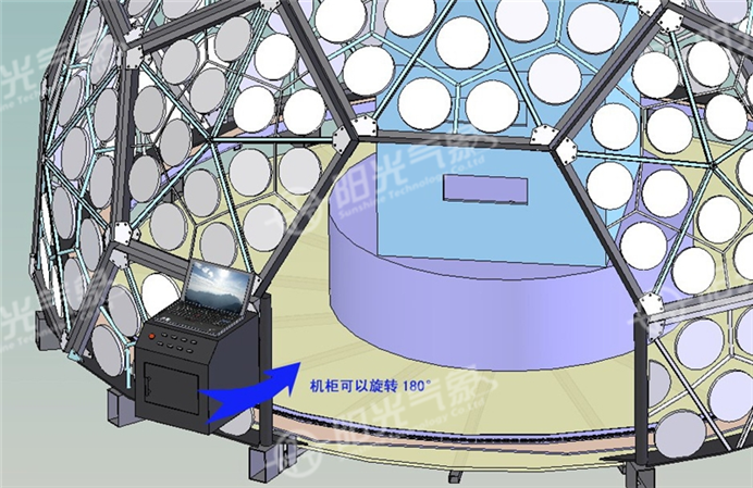 2、模拟太阳实时轨迹,通过计算机软件控制,实现太阳高度角及方位角的自动定位,从而实现了太阳实时模拟。