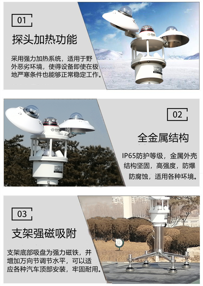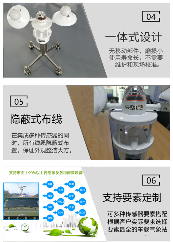 PC-4A型车载式环境监测仪是在结构设计和观测要素方面专门为移动应急环境而设计的一款综合观测自动气象站。它可以监测风向风速、空气温湿度、降雨、气压、噪声、太阳辐射等气象要素,也可以测量PM2.5、PM10、CO、NO2、SO2、O3等气体和颗粒物指标。