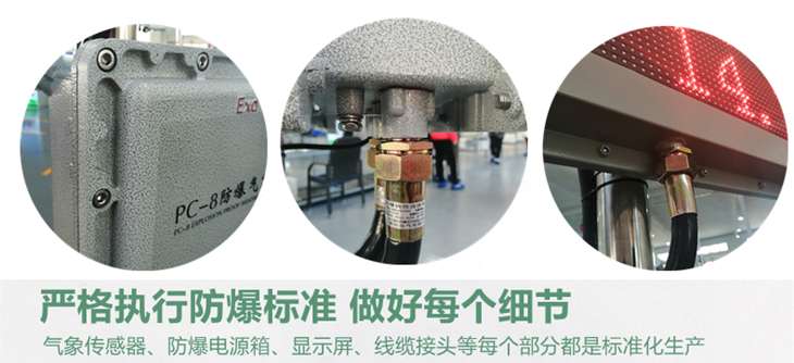 PC-8型防爆气象站是我公司根据市场需求,针对化工厂、油库等特殊场所对环境监测设备的防爆要求而研发生产的一款一体化环境监测产品。它集数据采集、存储、通讯上传于一体,再通过有线或无线的通讯方式与后台上位机管理软件或云平台对接,同时导出报表中可按照国标技术规范《GB17681—2024》,输出当日、当月、当年各气象参数的最大值、最小值和平均值等信息,供后期进行数据的处理分析。此款防爆气象站采用了防腐、防爆、防水、防震、防尘等高防护等级的设计理念,可满足各种特殊环境的使用需求,是化工厂、油库、隧道、矿井等领域的首选产品。