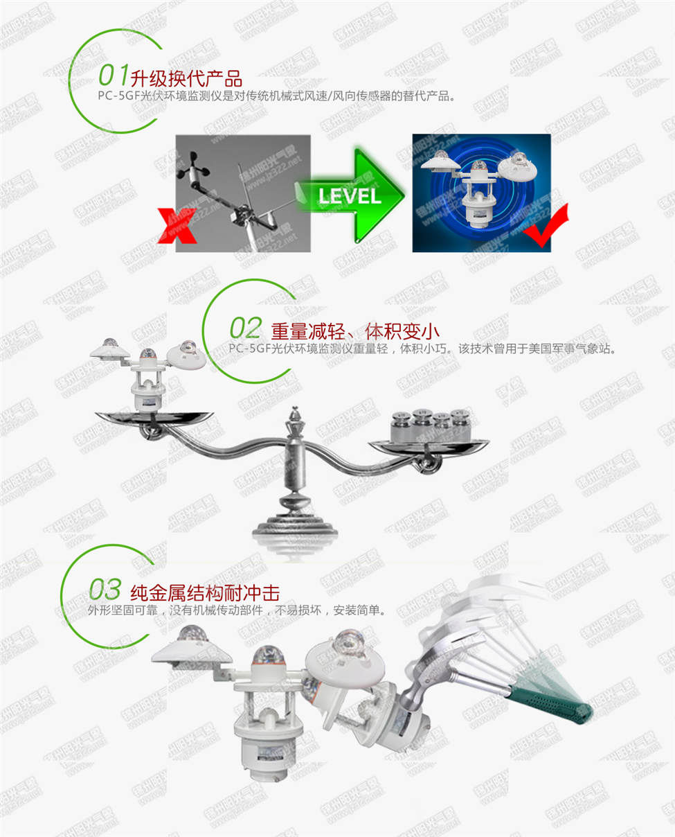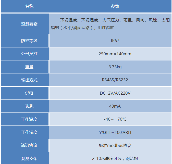 2. 一体化结构设计,美观便携,采集器与传感器采用一体化设计理念,与观测支架连接采用插拔式安装模式,没有任何移动部件,安装拆卸简单,是目前为止安装最为便捷的光伏环境监测仪。