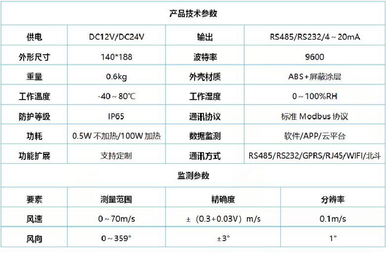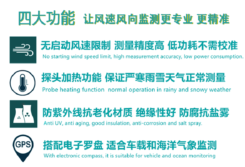 EC-A1型超声风速风向仪的工作原理是利用超声波时差法来实现风速的测量,无需现场校准或维护,抗腐蚀的外表面,使得它成为真正的安装后"高枕无忧"的设备。超声波风速风向仪设计灵活,有数字输出和模拟输出功能。
