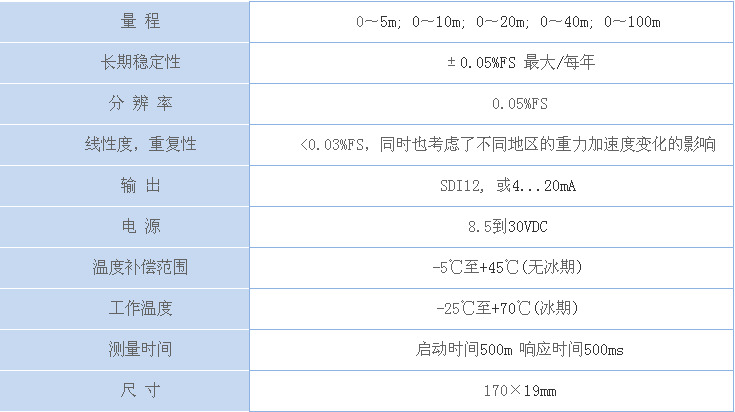 2、内置微处理器可消除由于水中温度、重力加速度和水中密度变化所带来的影响。
