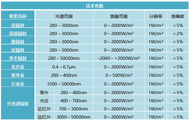 ●多参数测量:除了太阳总、散、直、反、净等常规辐射值的监测外,还可以灵活选配各种类型的太阳辐射传感器进行测量。