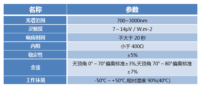 億彩85999cc官网 TBQ—HW型近红外辐射表的感应元件采用了绕线电镀式多接点热点堆,其表面涂有高吸收率的涂层,感应原件的热接点在感应面上,而冷接点位于仪器的机体内,以便直接取环境温度。为防止热接点单方向通过玻璃罩与环境进行热交换即影响测量精度,我们采用了两层玻璃罩的结构。同时,为了避免太阳辐射对冷接点的影响,我们又加了一个白色防辐射盘用来反射阳光的热辐射。当有光照时,冷热接点产生温差即产生电动势,也就是将光信号转换为电信号输出,在线性误差范围内,输出信号与太阳辐照度成正比。再则为了减小环境温度对辐射仪器输出的影响,我们则在仪器内附加了温度补偿装置一一热敏电阻,通过调整热敏电阻的温度系数来实现对辐射表输出电势的自动补偿。