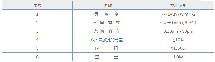 该表的工作原理为热电效应原理,感应部分是由康铜及镀铜组成的快速响应线绕、多圈电镀式热电堆,热电堆的上下两个面紧贴着涂有无光黑漆的感应面。当上下两个感应面受到不同的光辐射时加热了其各自的热电堆,形成冷热结点,产生温差电势。当太阳辐射大于地面辐射时输出为正,反之为负。