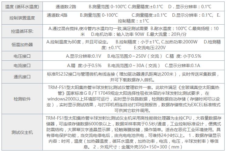 四、TRM-FS1型太阳集热管半球发射比测试仪技术指标