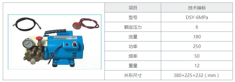 7、电动试压泵性能参数表