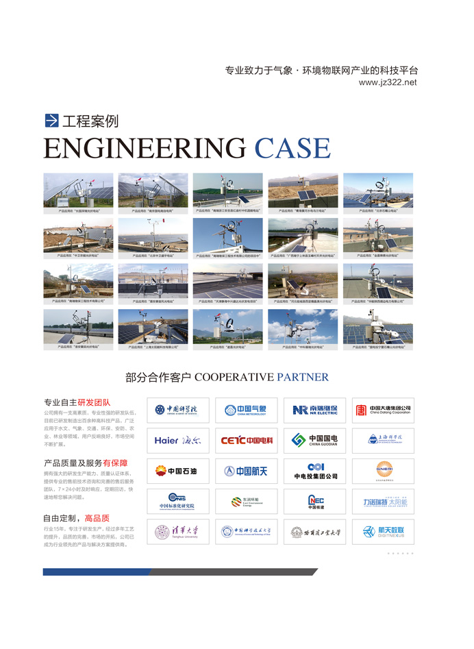 适用于各种光伏电站的太阳辐射监测、环境气候监测、科研机构或组网于气象、交通运输、军事、农林、水文、大型工程等领域。