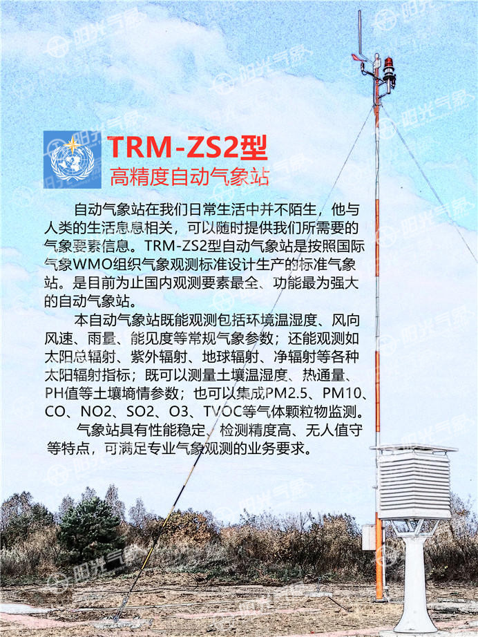 自动气象站在我们日常生活中并不陌生,他与人类的生活息息相关,可以随时提供我们所需要的气象要素信息。TRM-ZS2型自动气象站是我公司按照国际气象组织(WMO)气象观测标准设计、生产的标准气象站。